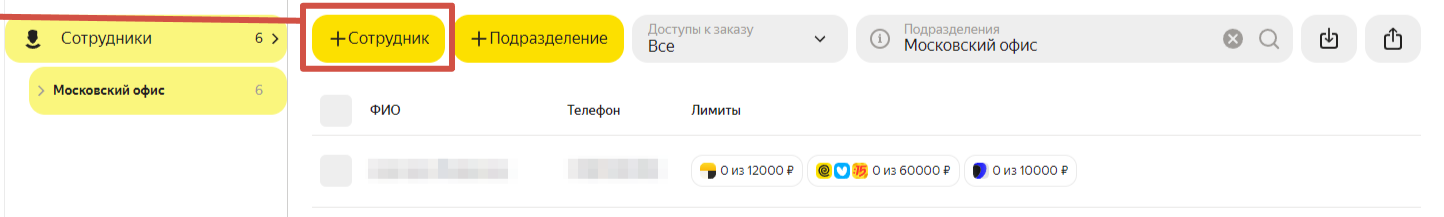 В разделе Сотрудники вы управляете доступом сотрудников вашей компании к корпоративным заказам. Сервисом смогут самостоятельно пользоваться только те, кого вы добавите в список на этой вкладке.