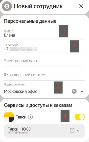 Определите тарифы и максимальную ежемесячную сумму, которая будет доступна сотруднику для самостоятельного заказа такси.