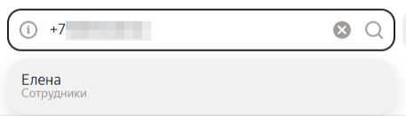В строке поиска введите номер телефона — появится надпись «Сотрудники». Нажмите на неё, чтобы открыть запись о сотруднике.