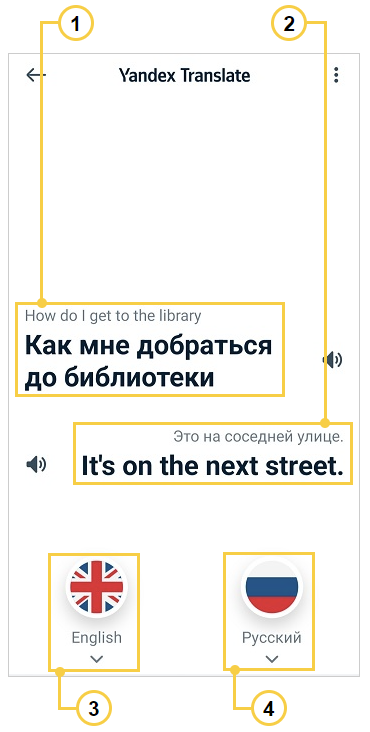 To start a dialog, tap the flag icon of the language you're going to use and speak. You'll see the translation on the screen.