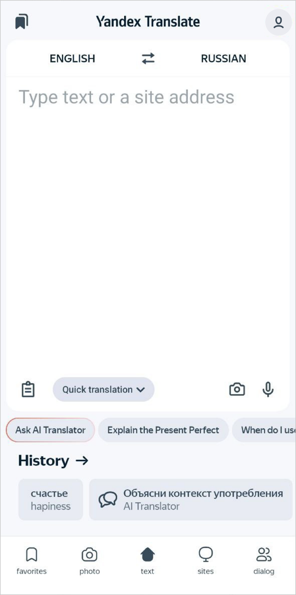 Use Yandex Translate to translate individual words and expressions, as well as text from websites and mobile apps.