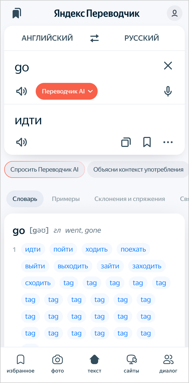Яндекс Аудармашы жекелеген сөздер мен тіркестерді, сайттар мен мобильді қосымшалардың мәтіндерін аударуға көмектеседі.