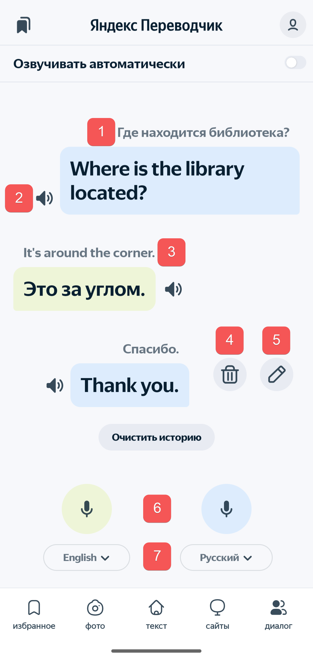 Dialog rejimi boshqa tilda gapiradigan suhbatdosh bilan muloqot qilish imkonini beradi.