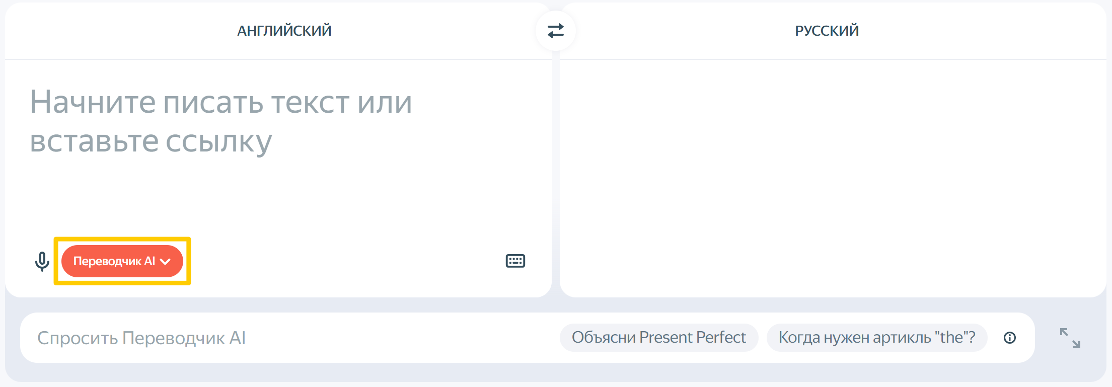 Переводчик AI — продвинутая модель, которая лучше понимает контекст и более качественно переводит сложные объемные тексты.