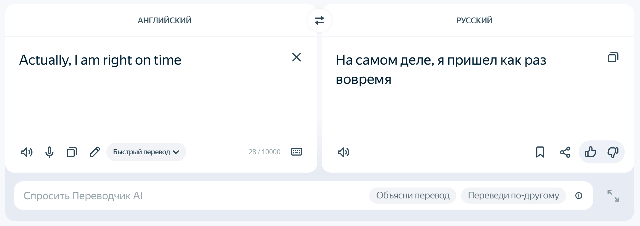 Быстрый перевод — базовая модель для повседневных задач. Подходит для коротких фраз и простых текстов.