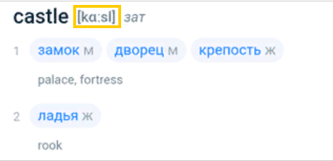 Транскрипция кейбір тілдер мен сөздер үшін қолжетімді. Мысалы, ағылшын тіліндегі сөздердің транскрипциясы тек ағылшын тілінен орыс тіліне аударылған кезде көрсетіледі. Кері аударма кезінде транскрипцияны көру үшін, аударманың астындағы сөздік мақаладағы сөзге сілтемені басыңыз.