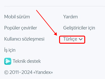 Yandex Çeviri’nin mobil web sayfası hakkında