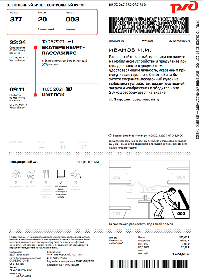 Электронная регистрация позволяет не получать билет на бланке в кассе. Достаточно распечатать билет самостоятельно или показать его проводнику на смартфоне вместе с документом.