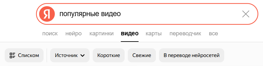 - В переводе нейросетей — видео на иностранном языке с закадровым переводом нейросетей Яндекса (доступно только в Яндекс Браузере).