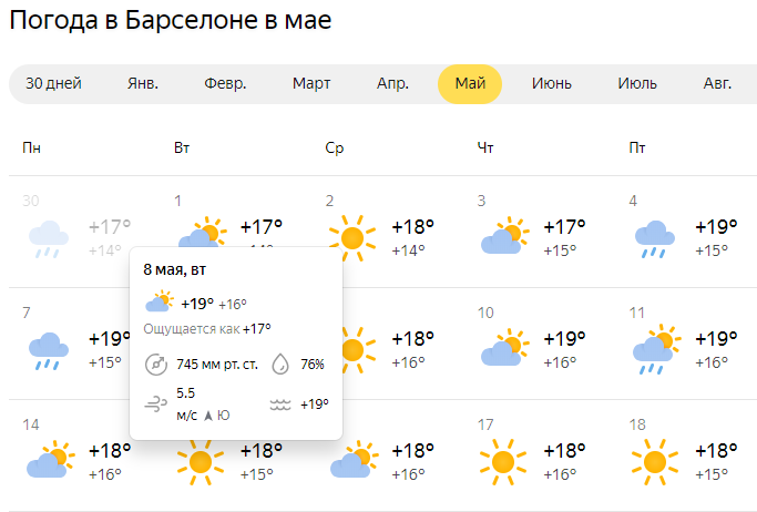 Чтобы узнать климат вашего города, в верхней части страницы перейдите на вкладку Прогноз на месяц.