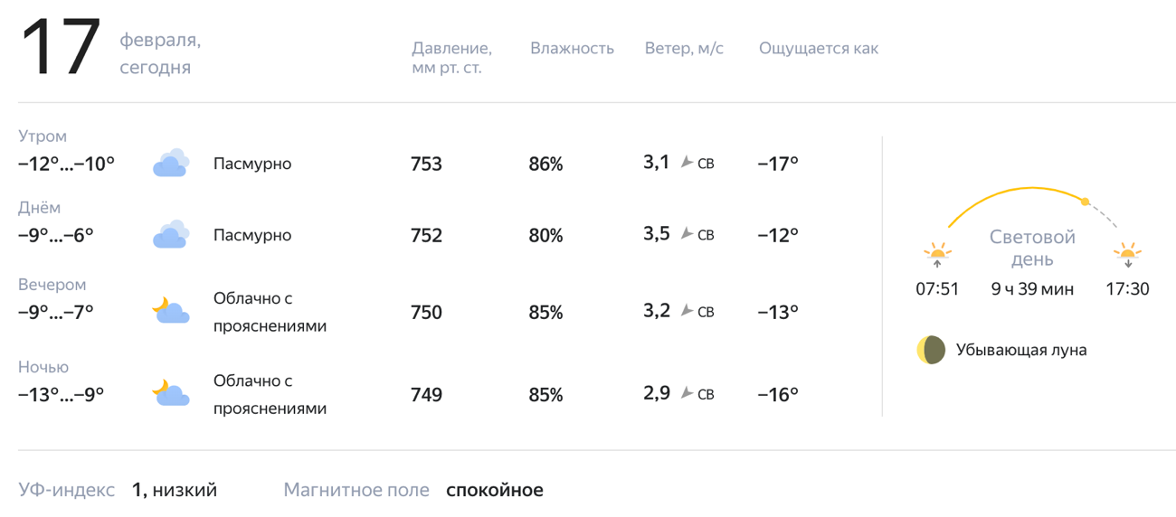 Яндекс Погода формирует подробный прогноз на 10 дней, потому что прогноз на дальнейший период недостоверен. По наблюдениям метеорологов, чем больше срок, на который сделан прогноз, тем меньше его точность: