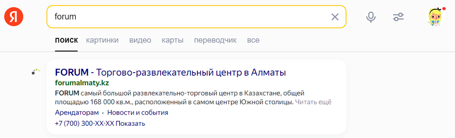 Содержит контактные данные организации, например адреса, телефоны, часы работы. Формируется из данных, проиндексированных Поиском либо указанных в профиле организации на Яндексе. Пользователь может посмотреть контакты организации, которые позволят быстро связаться с конкретным объектом или отправиться туда.