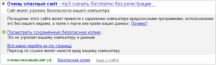 Чтобы защитить пользователей Яндекса, мы регулярно ищем вредоносный код на проиндексированных сайтах. Обнаружив вредоносный код, мы помечаем страницы такого сайта в результатах поиска.