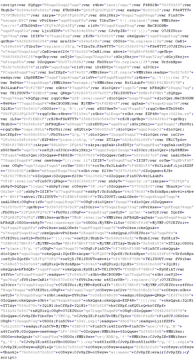 Пример вредоносного кода, по которому выносится вердикт Troj/JSRedir-HZ: