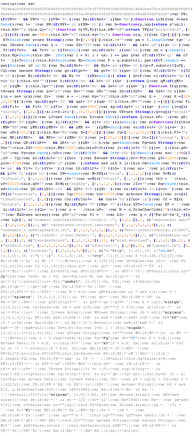 Пример вредоносного кода, по которому выносится вердикт Troj/JSRedir-GS: