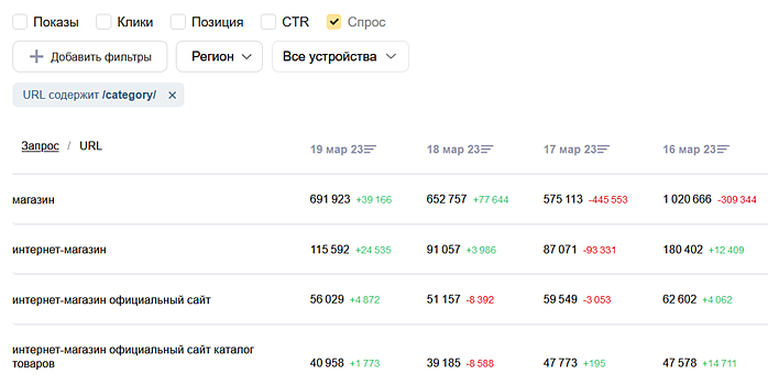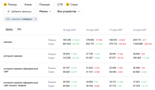 Чтобы получить более детальную статистику по запросам в разных разрезах, используйте следующие виды фильтрации: