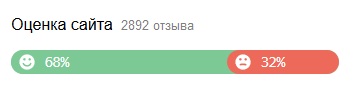 Пользователи могут оценить сайт, когда пишут отзыв. На страницах Информация о сайте и Отзывы и оценки в Яндекс Вебмастере отображается шкала оценок. Она показывает общее количество отзывов и соотношение хороших и плохих оценок. Плохими считаются оценки 1–3, хорошими — 4 и 5.