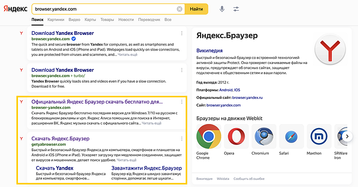 - страницы оптимизированы под навигационные запросы о популярных сайтах, бизнесах, сервисах;