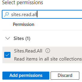 Sites.Read.All (SharePoint Online құжаттар кітапханасынан файлдарды іздеу және жүктеп алу үшін)