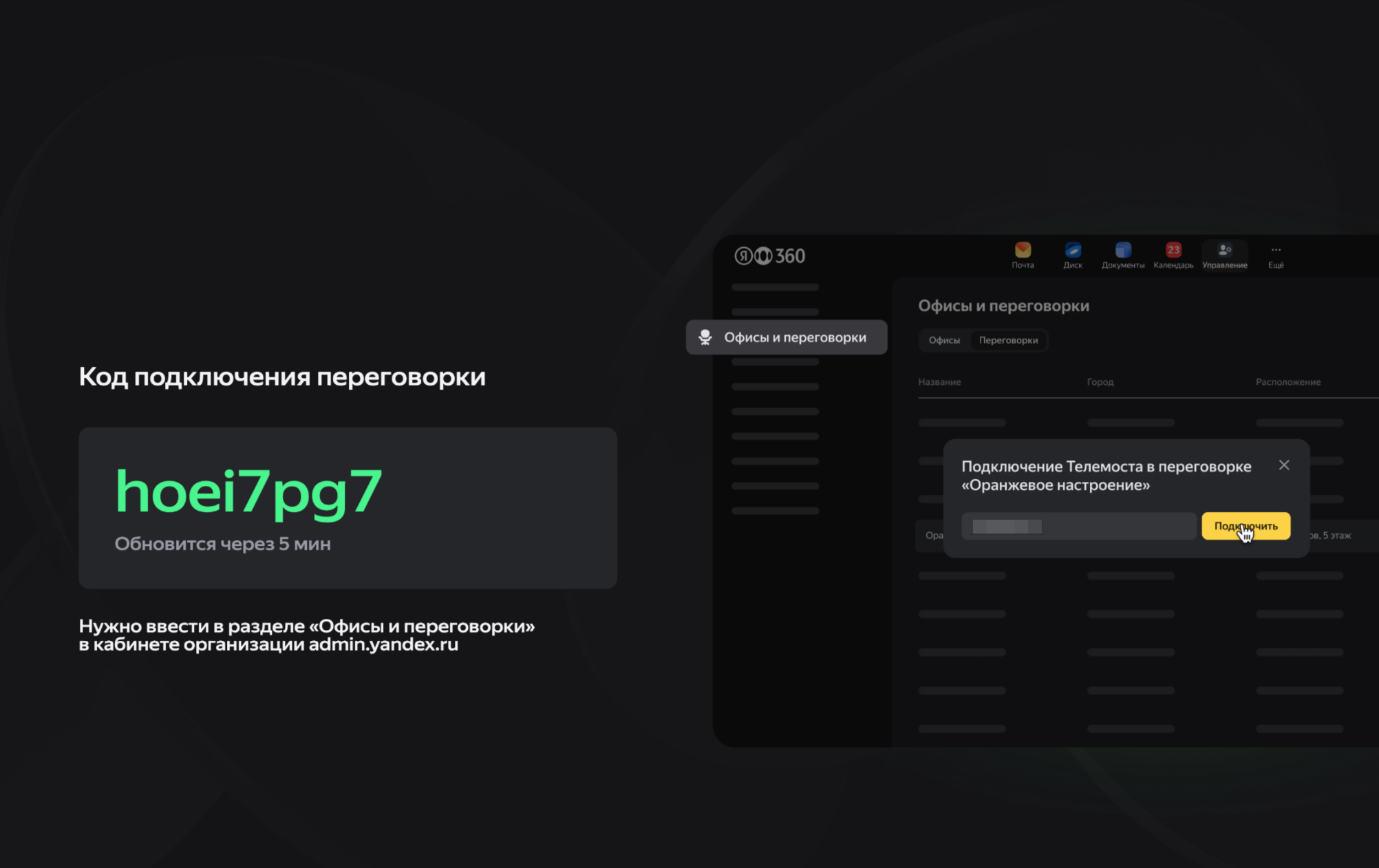 На вашем рабочем компьютере войдите в аккаунт администратора организации и перейдите на страницу Офисы и переговорки.