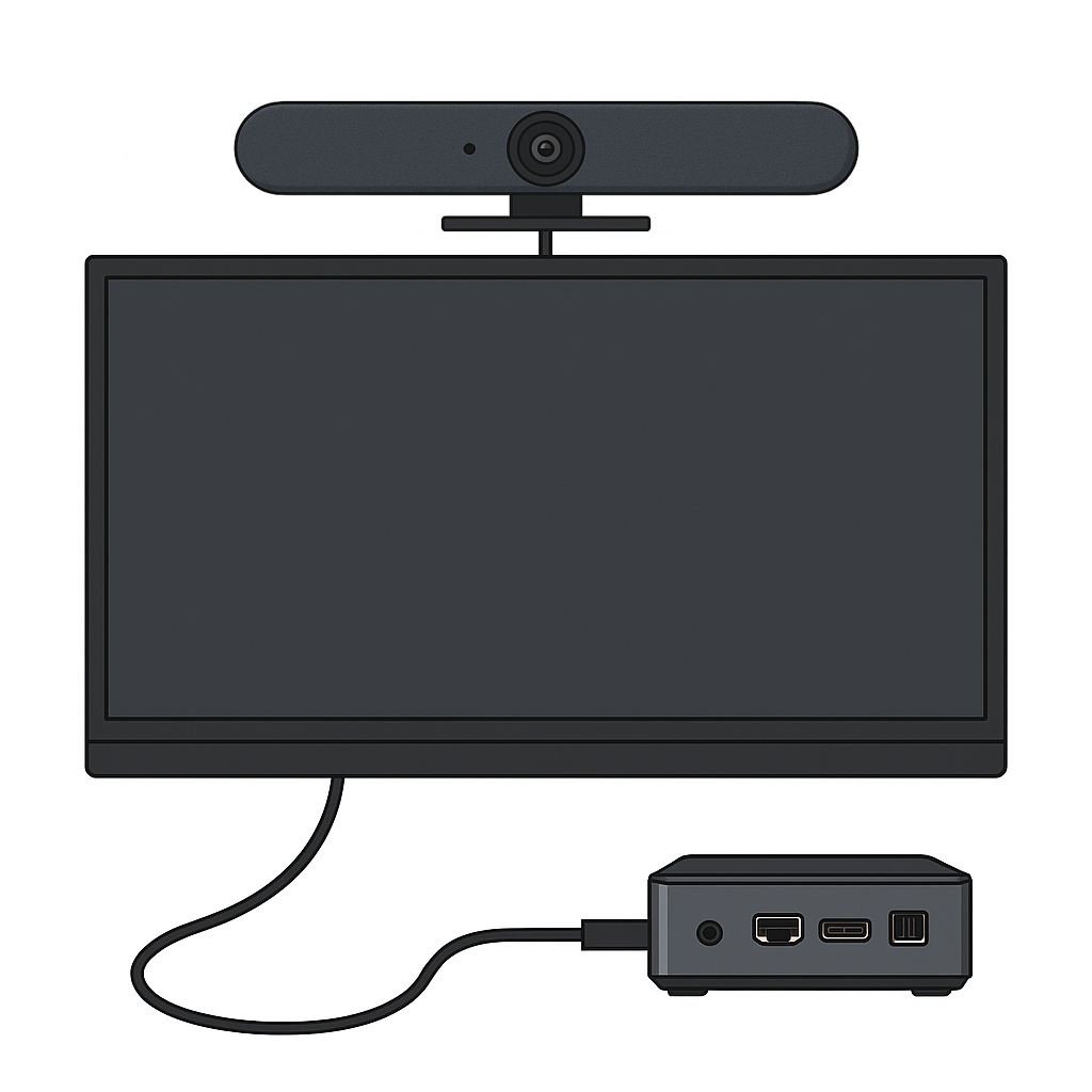 Переговорка должна быть оснащена подключенным к интернету ПК или мини-ПК, телевизором и аудиовизуальным оборудованием для конференций (камера, микрофон, динамик).
