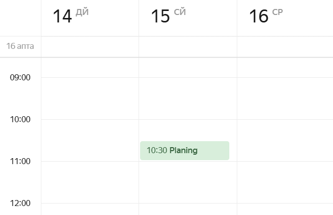 Күнтізбенің торында қажетті күн мен уақыт тұрған өріске басыңыз. Оқиғаны жасаудың қысқаша формасы күнтізбе торының үстінен ашылады.