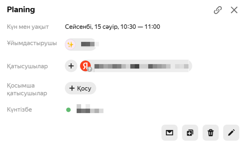 Қатысушыны тікелей оқиғаның карточкасы арқылы қосқан оңай — ол сіз күнтізбе торындағы оқиғаға басқан кезде ашылады: