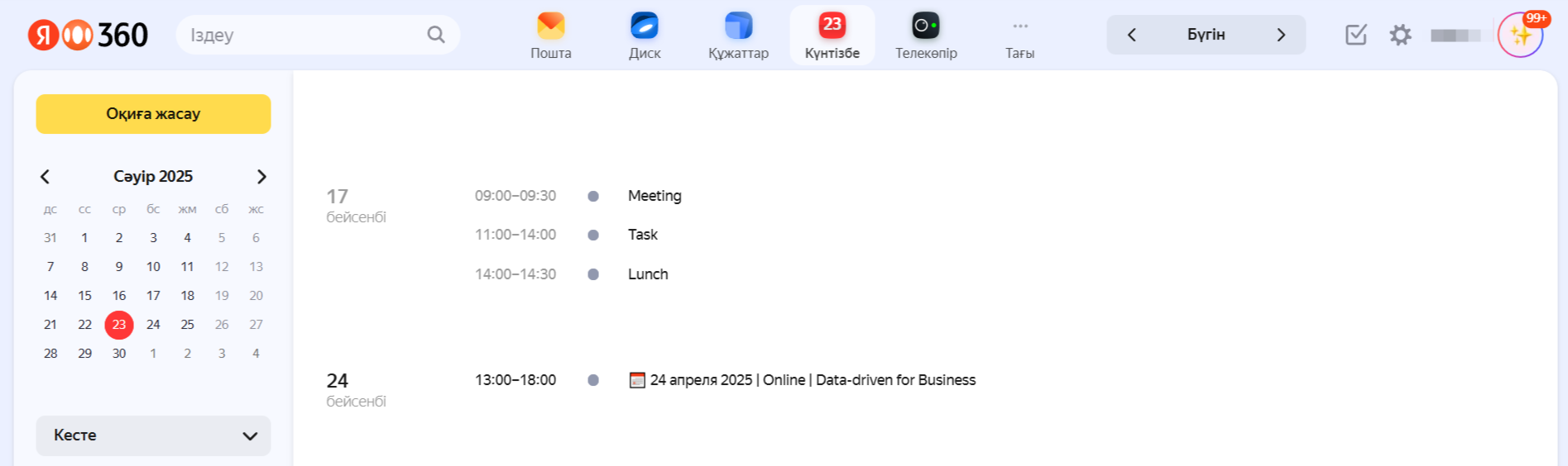 - Күнтізбенің мазмұнын түзету — сіз бүкіл оқиғаларды қарай, жасай және түзете аласыз.