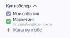 Пайдаланушы сізге күнтізбесін жіберген кезде хабарламалар баптауларында көрсетілген поштаңызға шақыру келеді. Рұқсат алу үшін шақырудағы Қабылдау сілтемесі арқылы өтіңіз. Сондан кейін сіз сол жақтағы панельден жаңа күнтізбені көресіз. Күнтізбе атауының астында оның иесінің мекенжайы көрсетіліп тұрады: