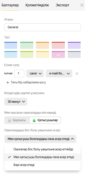 Сіз күнтізбенің атауы мен түсін өзгерте аласыз. Оған қоса – оқиғалар туралы ескертпелер тәсілін баптай аласыз: