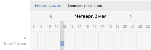 Если участник пользуется не Яндекс Календарем, а другим сервисом, посмотреть его расписание не получится.