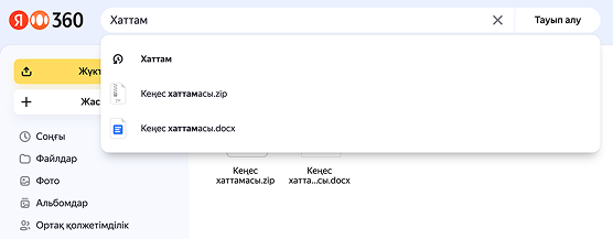 Егер файлдың атауы толық есіңізде болмаса, оны енгізе бастаңыз — Диск қолайлы нұсқаларды шығарады. Сондай-ақ Дискінің сыбырсөздерінде бұрынғы сұрауларыңыз көрсетіледі.