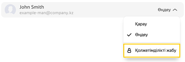 Пайдалану рұқсатын сіздің ұйымыңыздың қызметкерлеріне және Яндексте аккаунттары бар сыртқы пайдаланушыларға ашуға болады, егер әкімші орнатқан баптаулар буған мүмкіндік берсе.