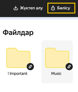 Файлды немесе қалтаны таңдап, контекстік мәзірде немесе жоғарғы панельде Бөлісу батырмасын басыңыз: