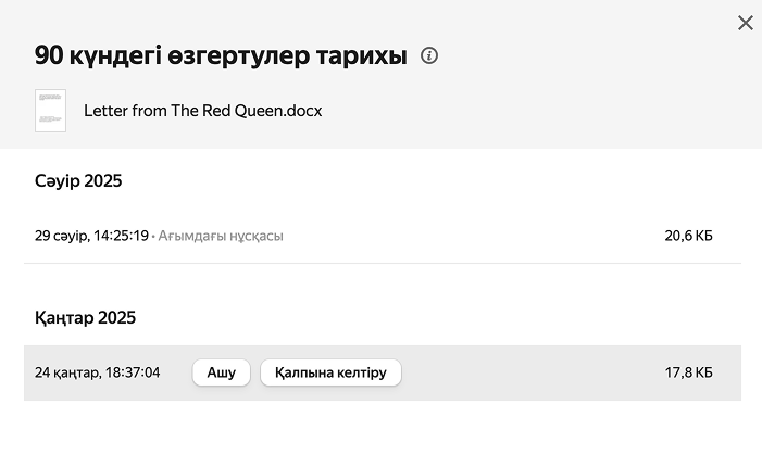Файл жасалған сәттен бастап соңғы 90 күндегі өзгерістер тарихы қолжетімді.