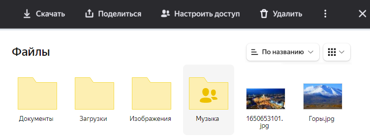 Если в интерфейсе нет кнопки Настроить доступ, значит ваша организация переведена на новый способ настройки доступа и использование общих папок теперь ограничено. О персональном доступе к файлам и папкам читайте в отдельной статье.