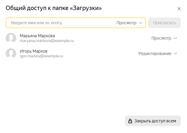 Чтобы получить доступ к папке, нужен аккаунт на Яндексе. Если у человека, которого вы пригласили, нет аккаунта, мы предложим ему зарегистрироваться.