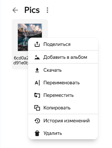 Чтобы получить всю информацию о выбранном файле или папке, нажмите значок в левом верхнем углу. В меню отобразятся: