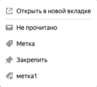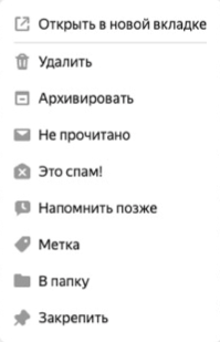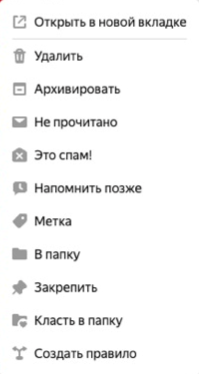 Хат үстіндегі қолжетімді әрекеттер тізімін көрсететін контекстік мәзір: