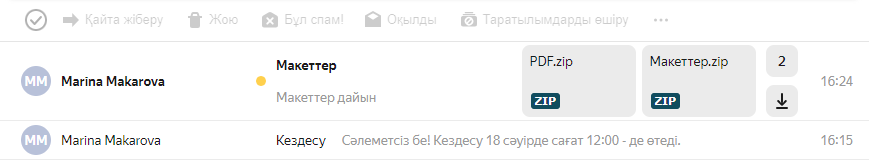 Егер хатта тіркеме бар болса, онда хаттар тізімінде ол миниатюра немесе белгіше түрінде көрсетіледі