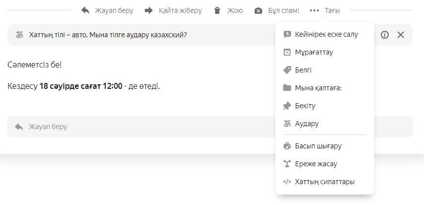 Хаттардың тізбегінде сіз тізбектің барлық хаттарын бірден басқара аласыз — мысалы, барлық оқылған хаттарды белгілеу, жою немесе жіберу. Ол үшін хат мәзірінде