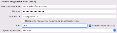 В разделе Сервер входящей почты (IMAP) отключите опцию Настроить параметры подключения автоматически. В поле Порт укажите значение