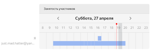 Если участник пользуется не Яндекс Календарем, а другим сервисом, посмотреть его расписание не получится.
