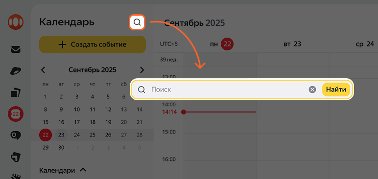 Поиск по календарю поможет быстро найти нужное событие — например, если вы не помните, на какую дату записались к врачу. Поиск учитывает всю информацию о событии. Вы можете написать в поисковую строку: