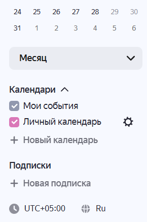 На панели слева наведите курсор на название нужного календаря и нажмите значок
