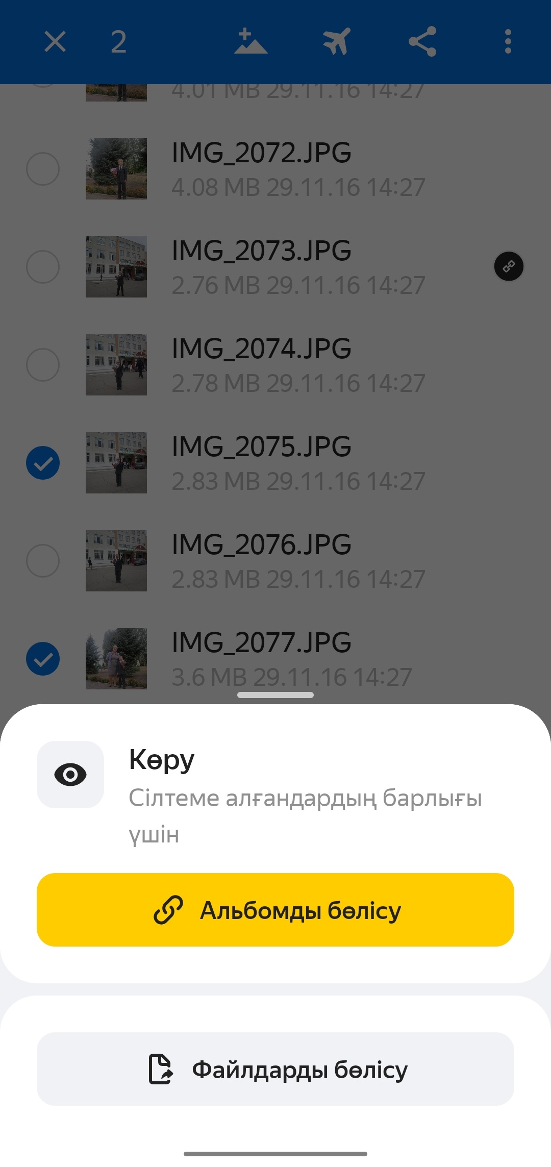 Бірнеше фото немесе видеоны таңдаған кезде сіз бірден альбомға сілтеме жібере аласыз. Дискідегі альбомда сіз белгілеген файлдар жатады.