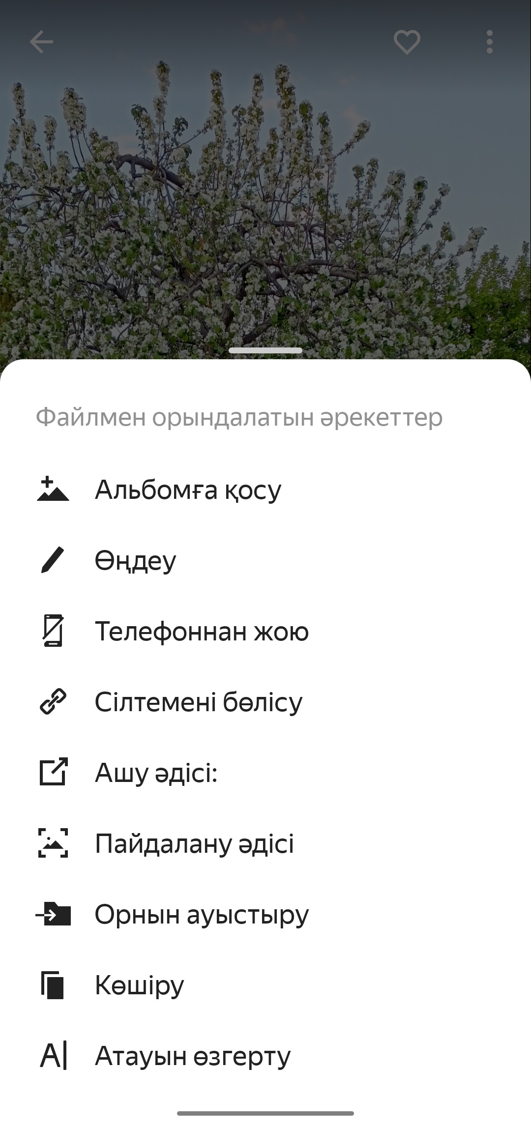 Жіберу батырмасын басып, жіберу тәсілін таңдаңыз — хатпен, мессенджер арқылы, Bluetooth арқылы немесе басқа тәсілмен.