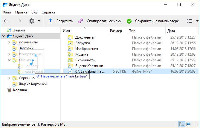 Файлдар мен қалталар компьютердегі сияқты көшіріледі — ол үшін оларды қажетті жерге жай ғана сүйреп апару керек.