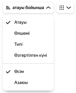 Қалтадағы файлдар тізімін сұрыптауға болады: барлық қолжетімді нұсқаларды көру үшін сұрыптау батырмасын басыңыз.