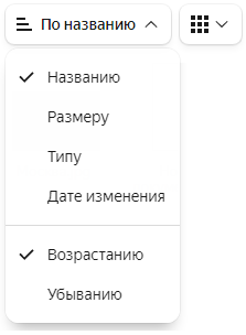 Список файлов в папке можно сортировать: нажмите кнопку сортировки, чтобы увидеть все доступные варианты.